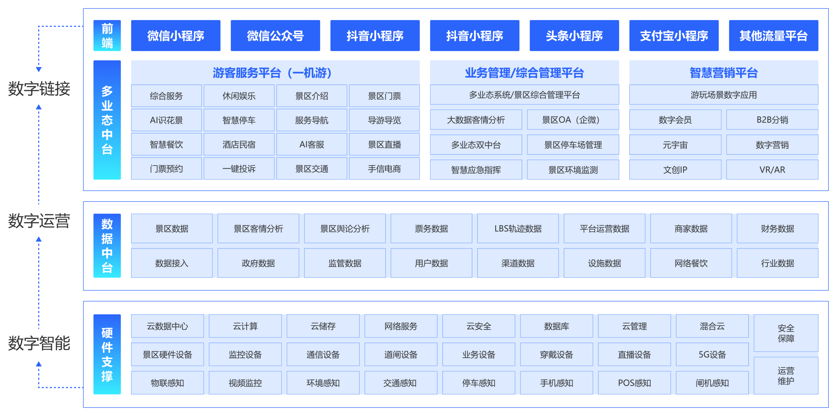覆盖政府监管、游客服务、商户运营、产业协同等多维度场景,旨在解决资源分散、数据孤岛、 体验不足等痛点